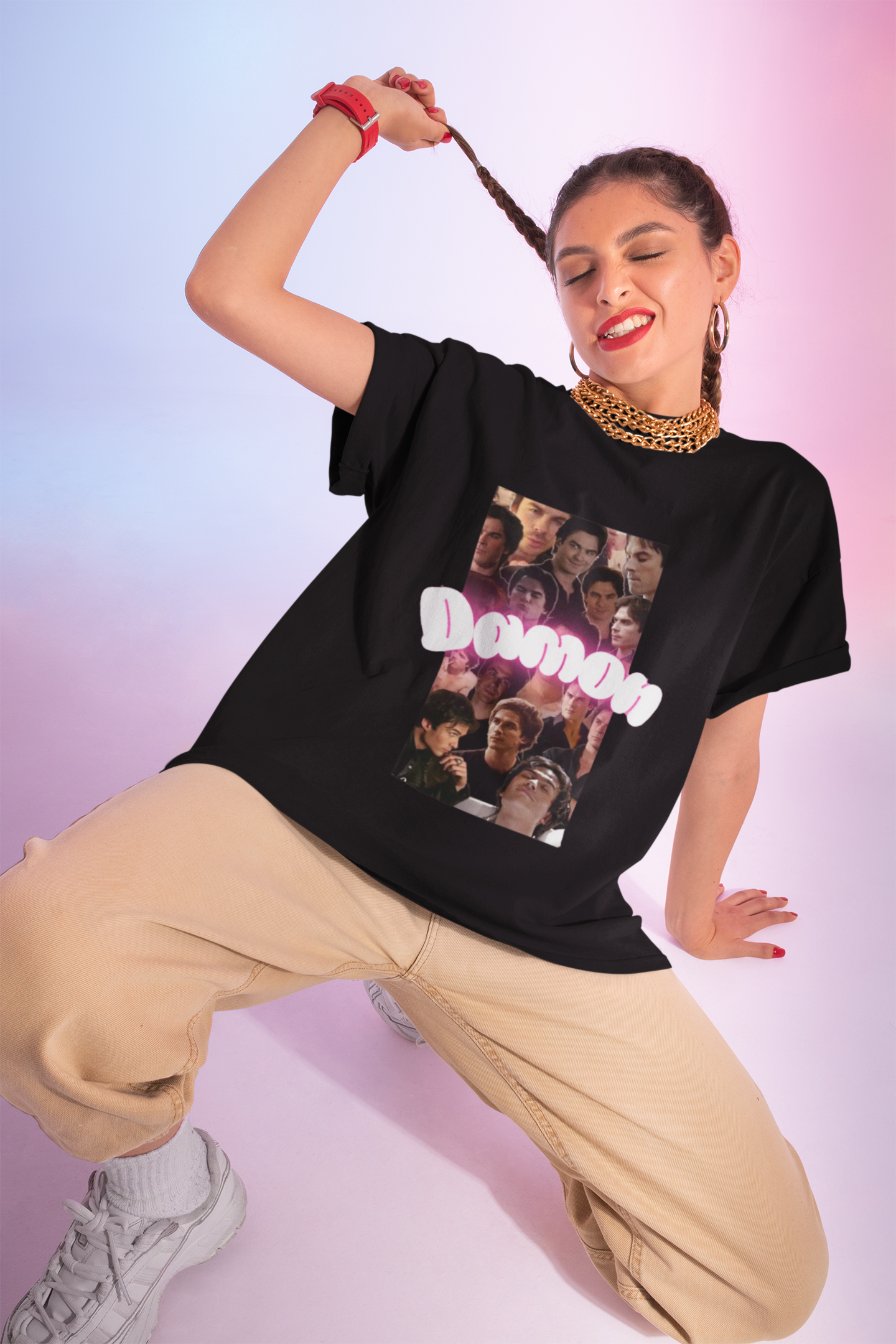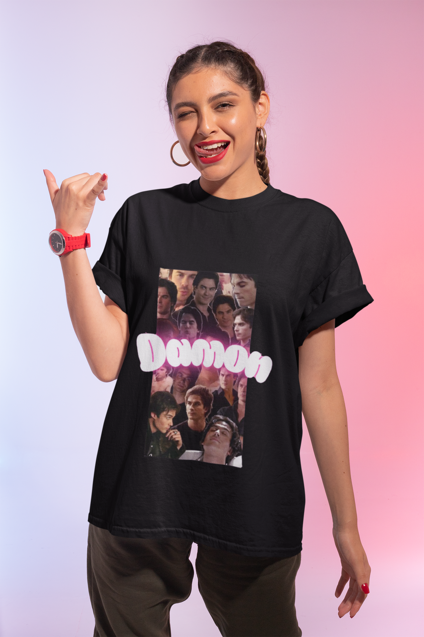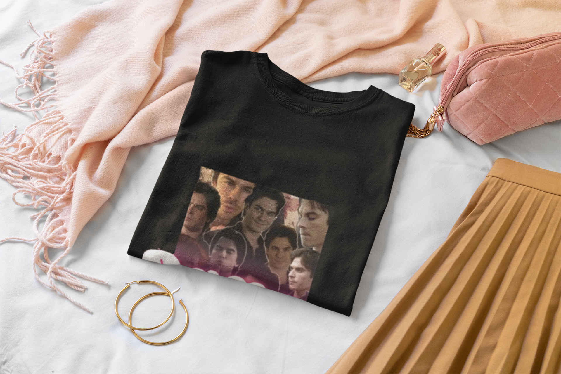 This lightweight cotton tee brings a quiet, nostalgic energy to everyday wear. A collage-style front print captures candid, cinematic moments — layered faces arranged like a memory board — with a soft, bubble-letter name anchoring the composition. The crew neck and classic fit make it easy to layer under a jacket or wear on its own; the result feels lived-in, familiar, and slightly rebellious in the best way. Wear it to late-night hangs, indie film nights, or when you want your shirt to start conversations instead of small talk.