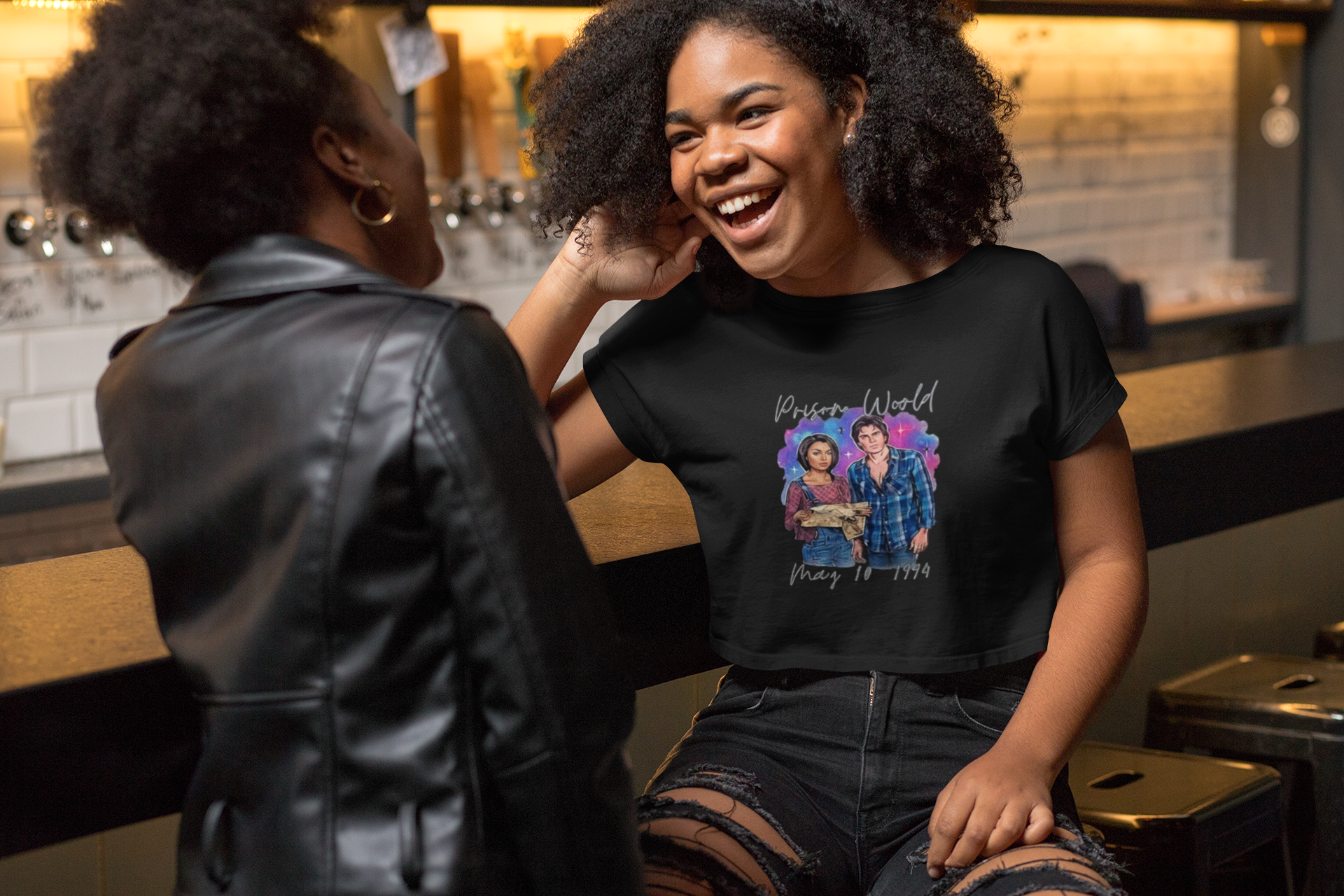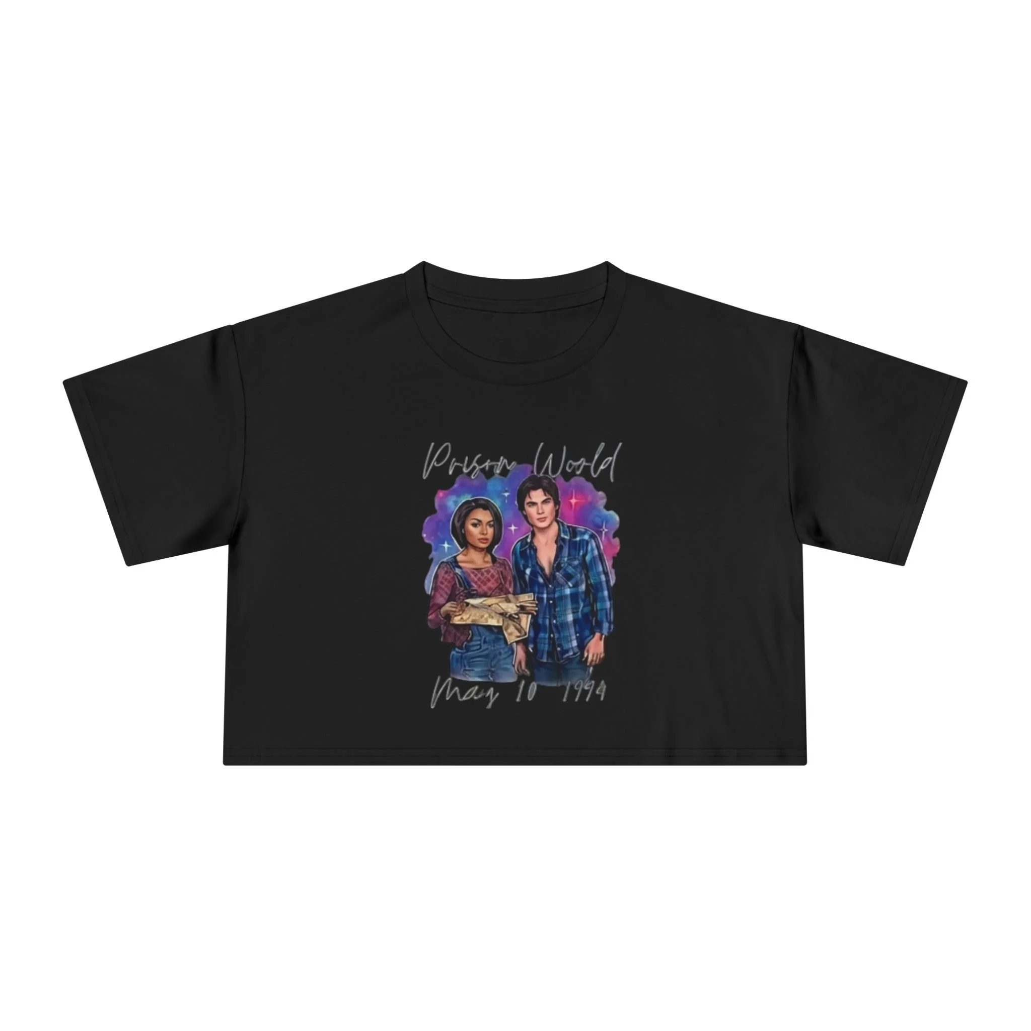 This relaxed crop tee brings a nostalgic, story-driven vibe to everyday wear. The soft, mid-weight cotton sits comfortably on dropped shoulders, creating an easy silhouette that layers beautifully over high-waisted jeans or under an oversized jacket. The front artwork—two characters set against a dreamy watercolor wash with handwritten script—adds a personal, movie-night energy that reads like a still from a favorite film. Wear it to casual meetups, indie screenings, or lazy weekends at a cafe. The sewn-in label and reinforced shoulder tape keep the shape after repeated washes, while double-needle stitching ensures this tee holds up to daily wear. It feels lived-in from the first wear but built to last, a small wearable memory for people who love style with a story.