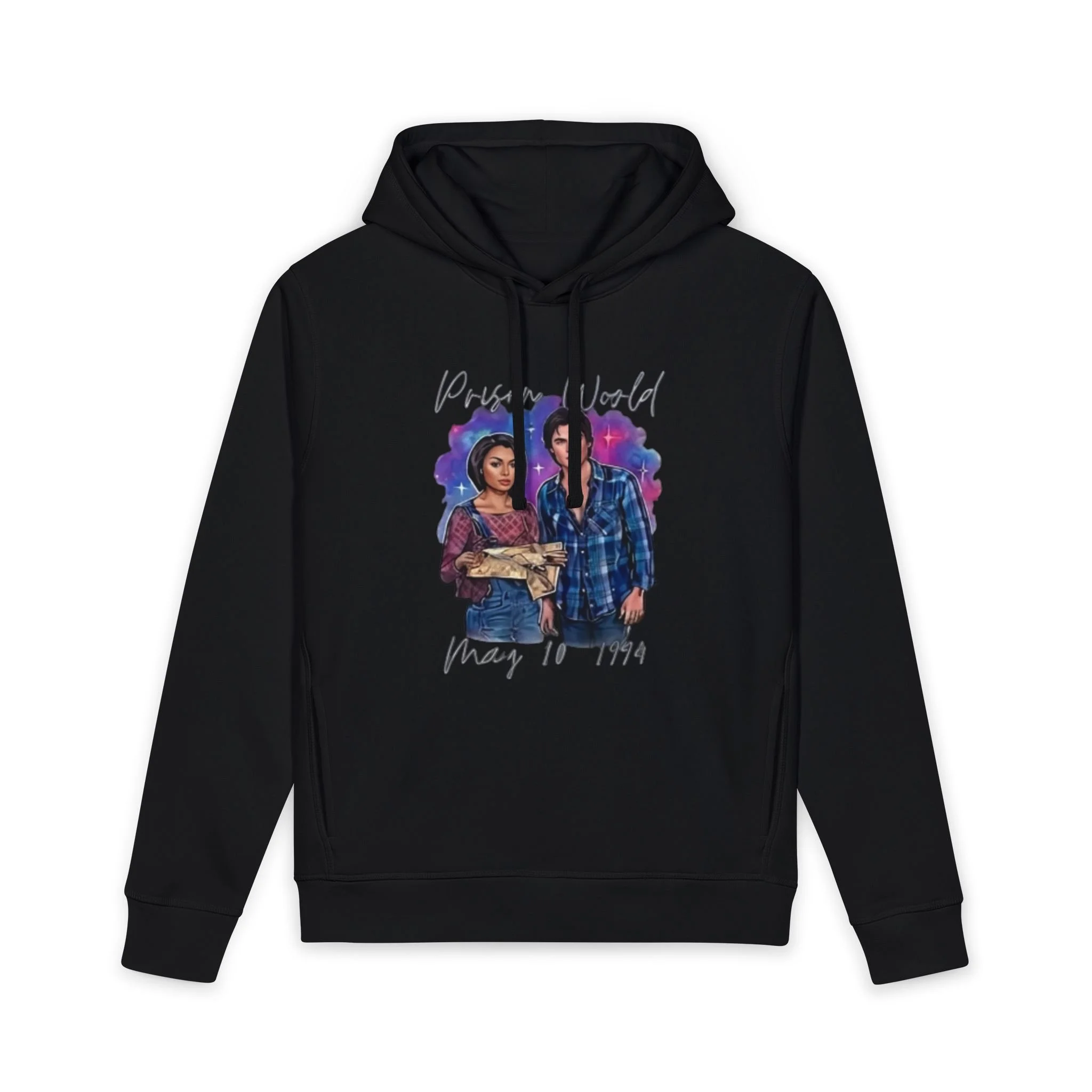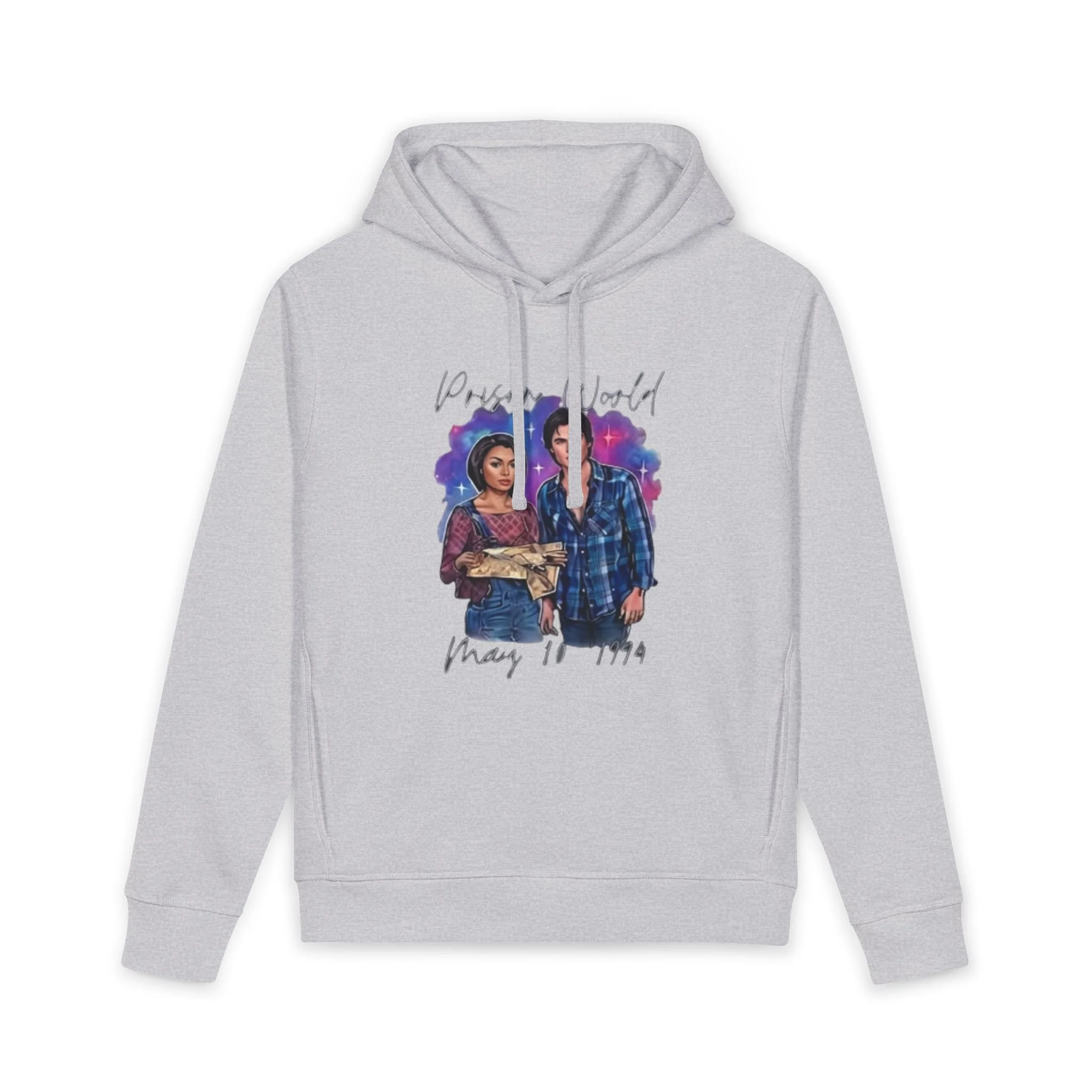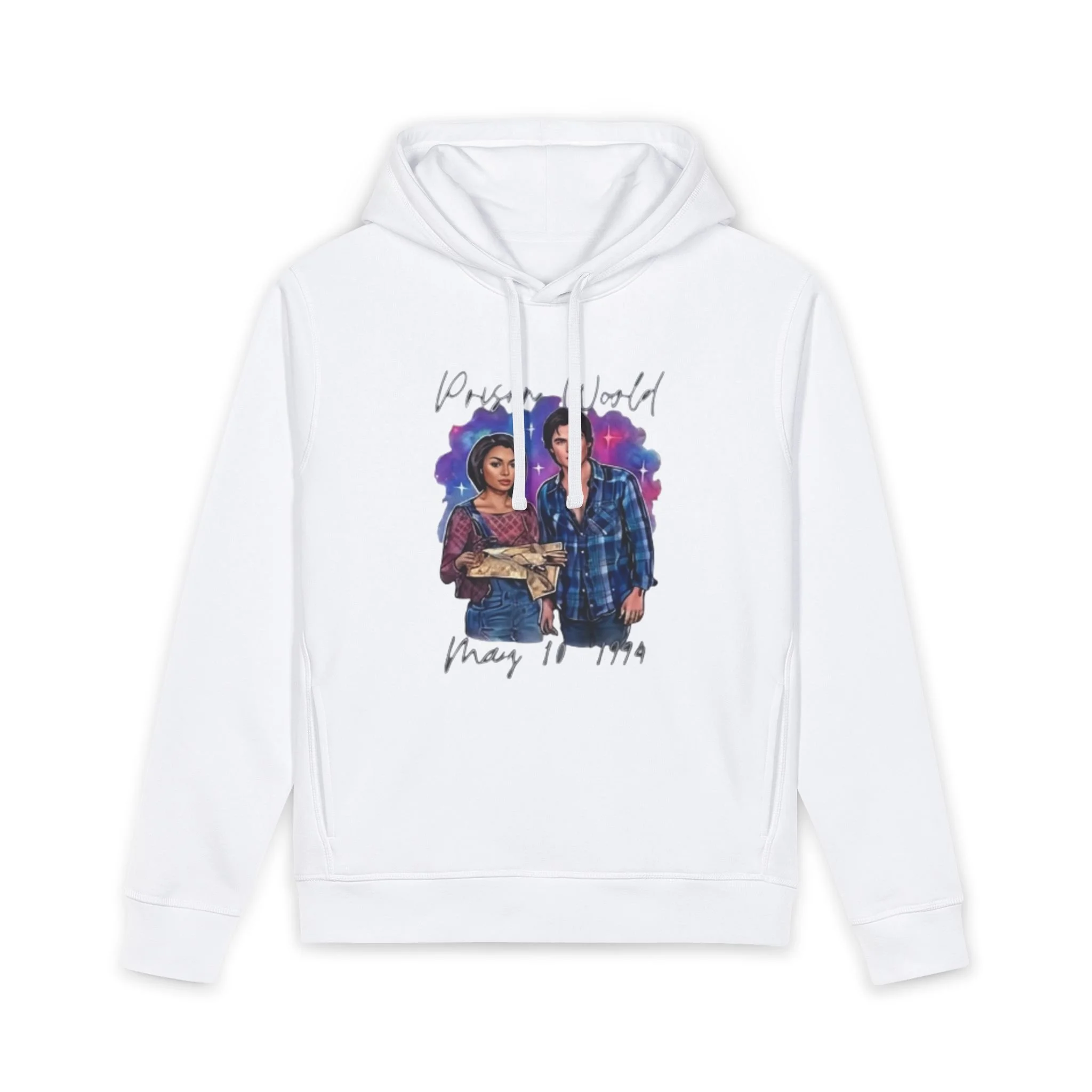 A soft, responsibly made hoodie that carries quiet strength. The artwork on the front—a watercolor-style portrait of two people side by side with handwritten text—feels like a captured moment: solidarity, memory, and gentle defiance. Lightweight but substantial, the double-layered hood and slanted side pockets make it useful for cool mornings and long evenings. Organic fibers and recycled content give the fabric a smooth hand and a lived-in drape that settles naturally around the shoulders. Wear it on walks through the neighborhood, to community gatherings, or when you want a wearable reminder of who stands with you.